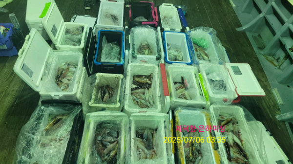 반갑습니다 은하호입니다오징어.한치.고등어 쿨러 채우기폭우로 민물 유입이 많이 되어 조황이 저조했습니다고등어도 많이 나왔습니다한치 토요일 예약완료날이 많이 덥습니다 건강관리 잘하시길 바랍니다*** 진해 은하피싱 예약 안내 ***예약문의 : 010-2209-1844배타는곳 : 경남 창원시 진해구 제덕동 919 (해녀의집 방파제)배에서 명부 작성합니다은하피싱 밴드 https://band.us/@eunhafishing 홈페이지 : https://eunha.sunsang24.com/